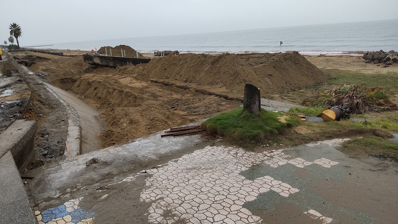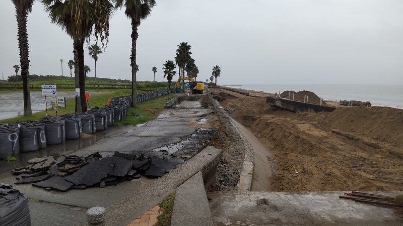浜への入口が閉鎖されて工事中でした