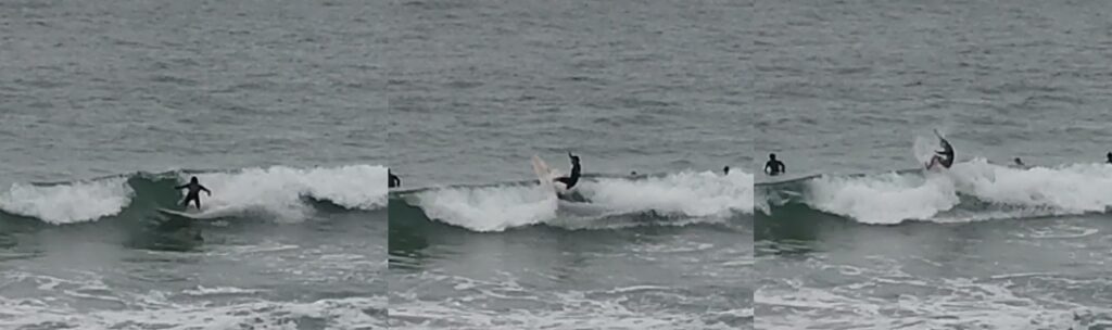 今週末も伊勢方面に波がありそうなので伊勢方面に向かいました。今週はもう10月も後半になりましたが今日はまだ短パンTシャツで移動出来ました。流石にタッパは持って来なかったですが雨の中、市後浜を目指しました。波情報では東向きのポイントはどこも波がありそうでした。今日は朝から用事が有りいつもより更に遅く到着したので既に15時前でした。市後浜は腹サイズの波が割れていて人もそこまで多くなく遊べそうなので直ぐに着替えて入りました。水温は先週より若干下がったように感じましたが、シーガルで全然問題無く、スプリングで良い感じでした。波は腰~腹位の波が割れていますが、面が少し荒れていてあまり掘れた感じでは無く割れていました。波数はあるのですが纏まってなくて引っ掛け難い波で前半全然乗れなくて焦りました。皆さん上手く乗られているのですが私は噛み合って無い感じでした。最初のテイクオフでタル目の波に乗ってイマイチ加速しないのでフロントよりを踏み込んだらそのまま前から突き刺さって撃沈しました(><)