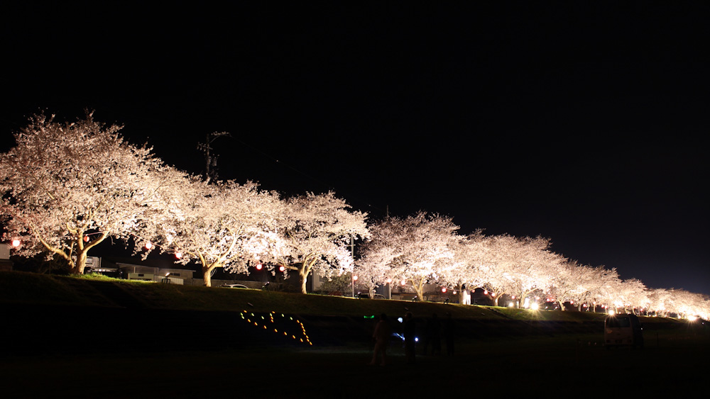 最後に伊賀市を通過する時にこの時期毎週見掛ける依那古堤防の桜のライトアップを見ながら通過しました。ここの桜は何度も撮影したことがあるので撮影はしませんでしたが、もう今年は終わったものだと思ってましたが今晩はまだライトアップされてました。真っすぐに並んだ桜並木が圧巻で通過するだけでテンション上がります